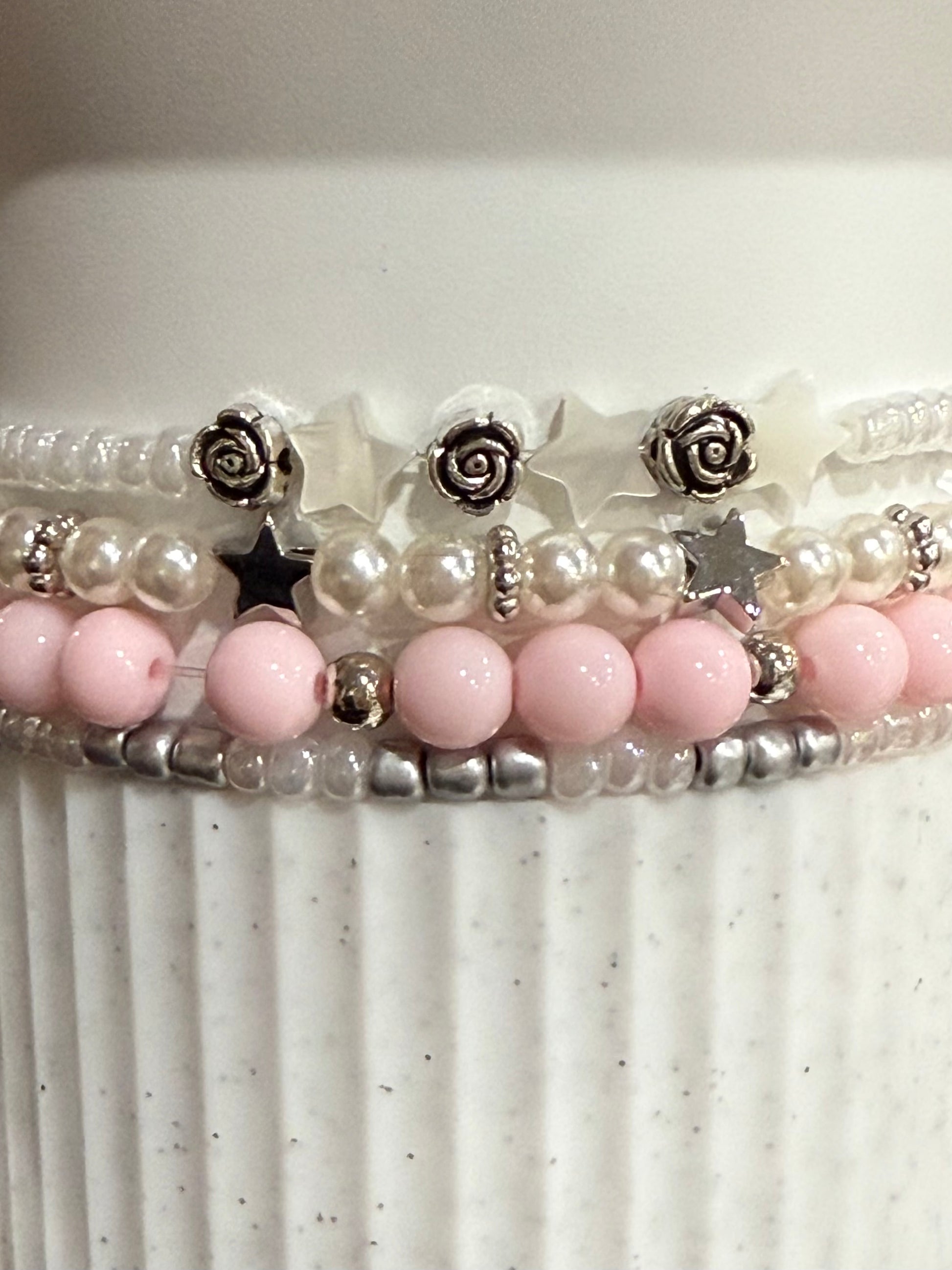 Baby Pink White Silver - Tumbler Bracelet Stacks