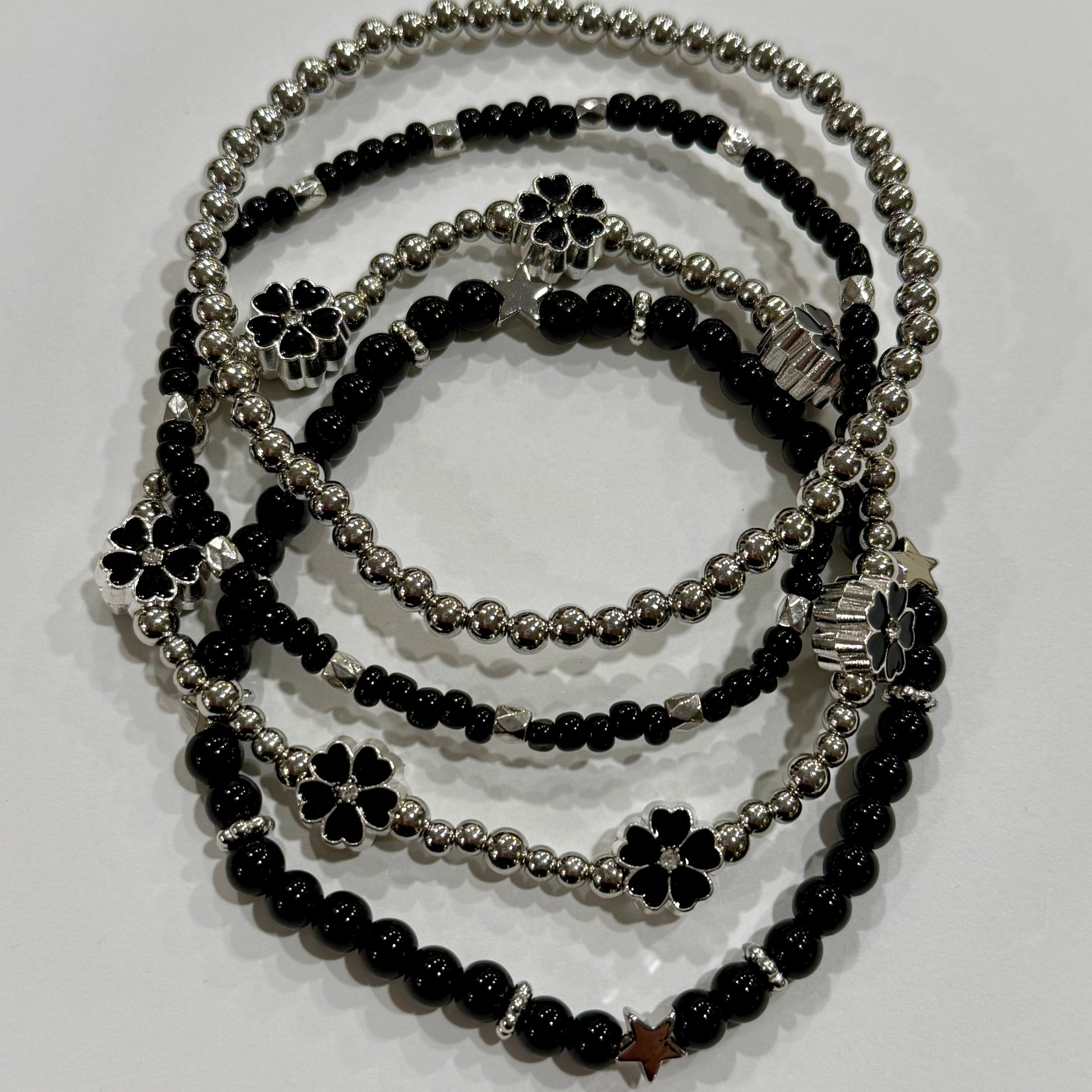 Black Silver Flower - Tumbler Bracelet Stacks