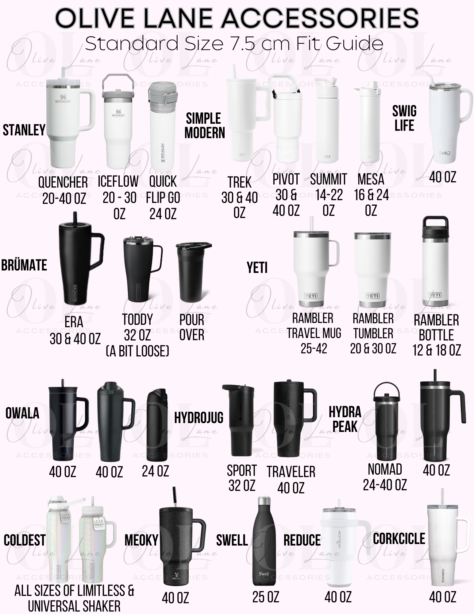including Simple Modern, Stanley, Hydrojug, Brumate, Yeti, & Owala.