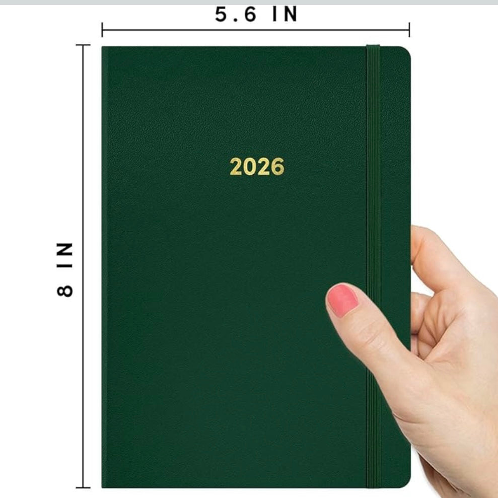 Take control of your schedule with this sophisticated Weekly and Monthly Casebound Planner, engineered for professionals and students who demand organization without compromise. The vegan leather cover provides durability while maintaining an eco-conscious approach, while the undated format offers flexibility year-round. Inside, you'll find 12 monthly spreads and 52 weekly spreads paired with dot grid pages for custom tracking and note-taking. The premium 100 gsm acid-free paper with soy-based ink eliminates ghosting and bleed-through, accommodating virtually any pen type. At 5.7 x 8 inches, it balances portability with ample writing space. Practical features including dual ribbon bookmarks, elastic closure, and an expandable back pocket streamline daily planning. Two sheets of gold foil stickers enable personalization, making this planner both functional and refined.ย Non-refundable.