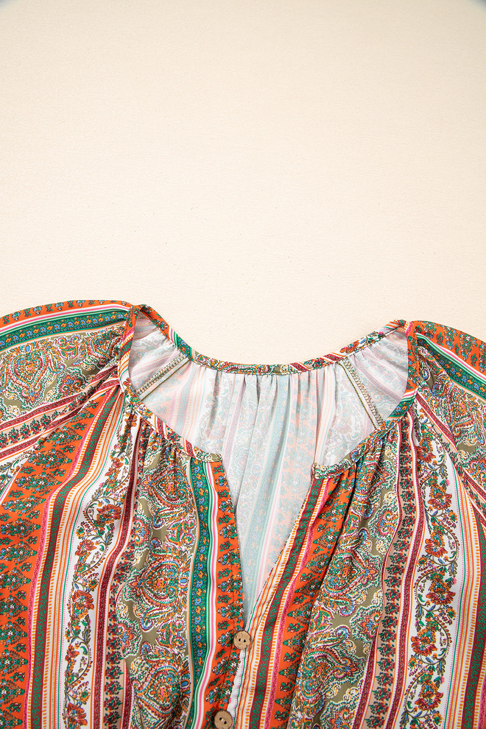 Red Bohemian Floral Print Buttoned V Neck Ruffle Tiered Dress
